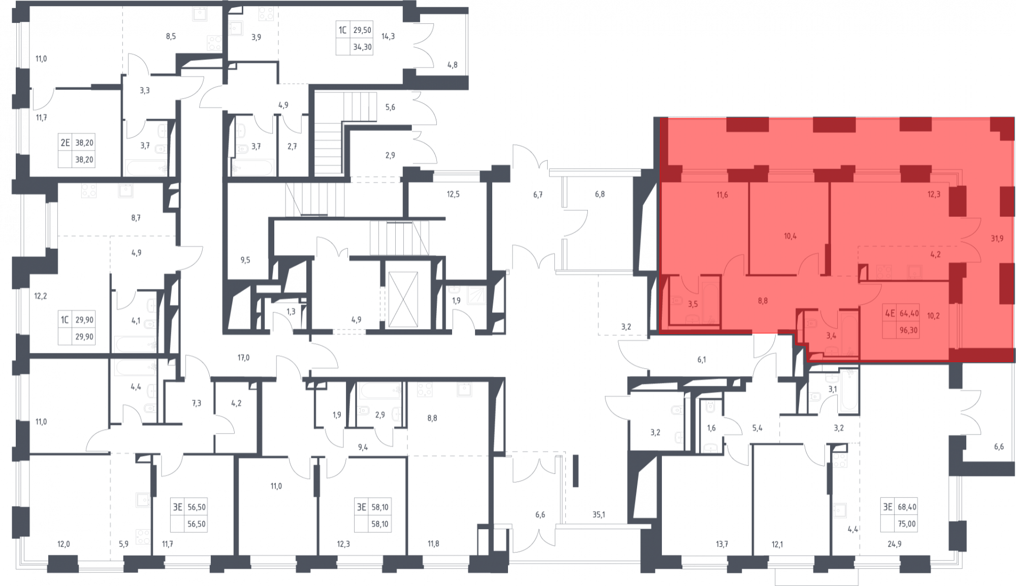 39 473 512 ₽4-к.квартира, 64.08 м², 1 эт.