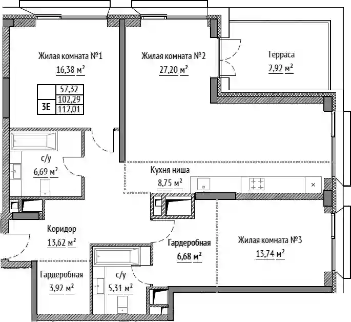 3-к.квартира, 102.29 м², 21 эт. в ЖК Very Корпус 2