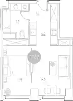 2-к.квартира, 41 м², 6 эт. в ЖК Very Корпус 5