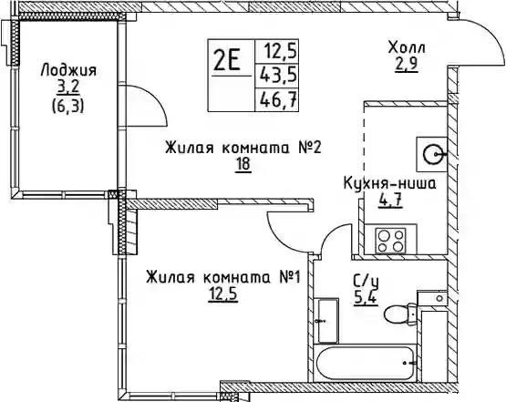21 586 400 ₽2-к.квартира, 43.3 м², 2 эт.