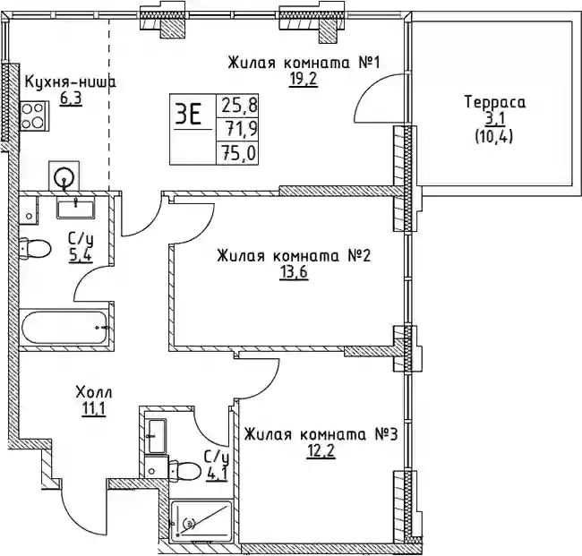 40 112 000 ₽3-к.квартира, 71.8 м², 11 эт.