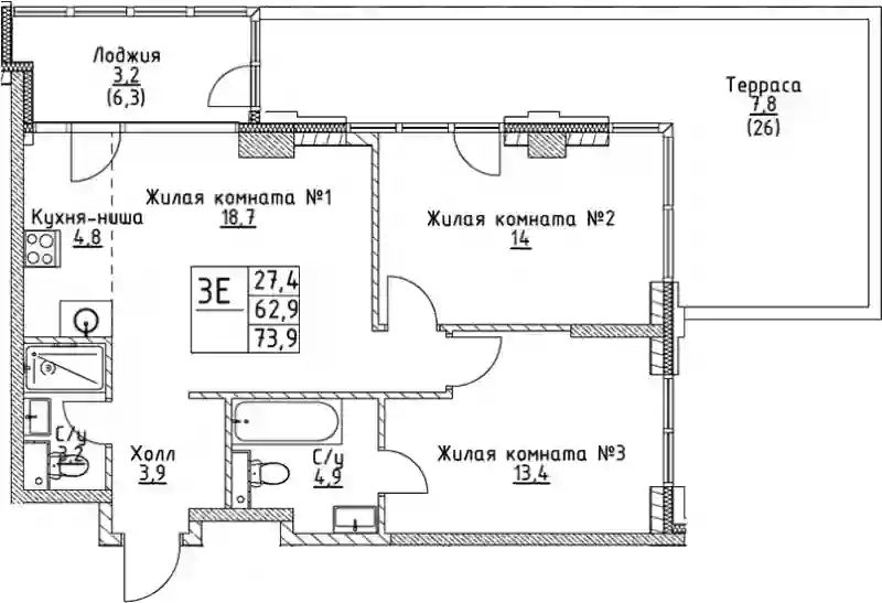 33 464 800 ₽3-к.квартира, 69 м², 7 эт.