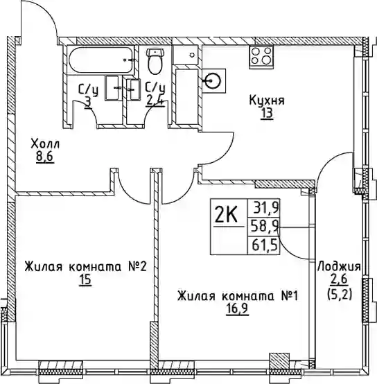 30 607 000 ₽2-к.квартира, 60.9 м², 12 эт.