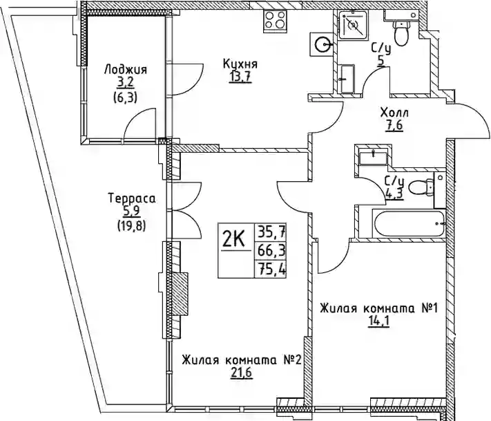 2-к.квартира, 66.3 м², 2 эт. в ЖК Very на Миклухо-Маклая Корпус 3