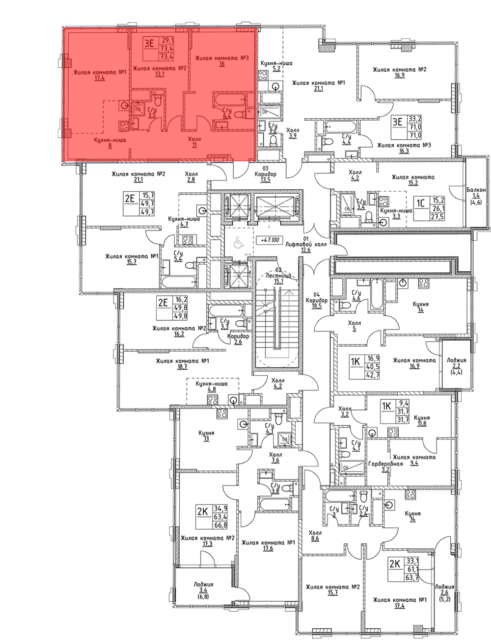 42 020 000 ₽3-к.квартира, 73.2 м², 15 эт.