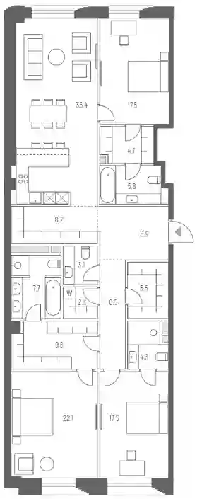 В проекте предложен широкий выбор планировочных решений, помимо базовых квартир, доступны эксклюзивные лоты — пентхаусы с террасами и квартиры с патио. Большая часть квартир в проекте предлагается с чистовой отделкой и оборудованными ванными комнатами, 3 корпуса реализуются без отделки. Квартиры оснащены интеллектуальная системой «умный дом», которая позволяет дистанционно управлять светом, отоплением, кондиционированием и другими функциями.