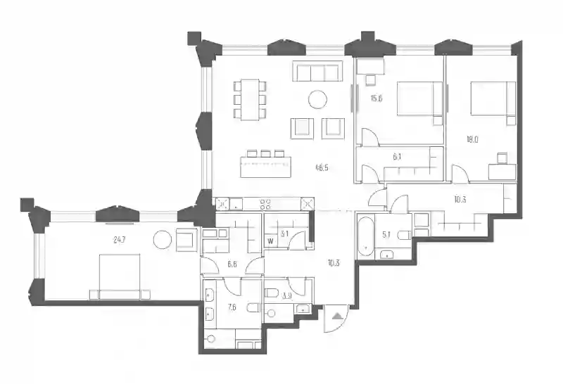 В проекте предложен широкий выбор планировочных решений, помимо базовых квартир, доступны эксклюзивные лоты — пентхаусы с террасами и квартиры с патио. Большая часть квартир в проекте предлагается с чистовой отделкой и оборудованными ванными комнатами, 3 корпуса реализуются без отделки. Квартиры оснащены интеллектуальная системой «умный дом», которая позволяет дистанционно управлять светом, отоплением, кондиционированием и другими функциями.