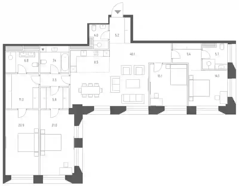 5+к.квартира, 174.7 м², 3 эт. в ЖК Vesper Кутузовский Корпус 8