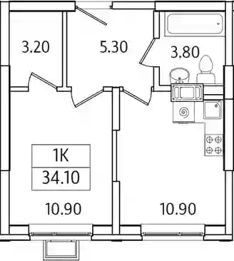 6 596 960 ₽1-к.квартира, 34.1 м², 16 эт.