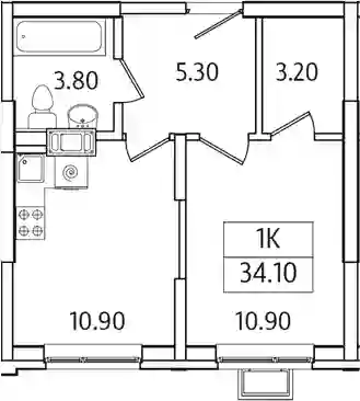6 596 960 ₽1-к.квартира, 34.1 м², 16 эт.