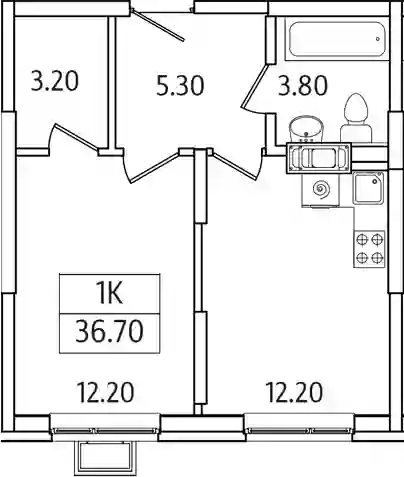 7 660 000 ₽1-к.квартира, 37.7 м², 2 эт.