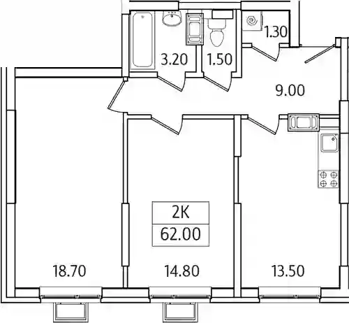 12 320 000 ₽2-к.квартира, 64.5 м², 2 эт.