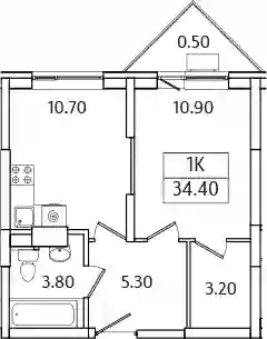 11 315 834 ₽1-к.квартира, 34.6 м², 2 эт.