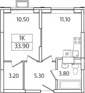 8 390 000 ₽2-к.квартира, 32.9 м², 3 эт.