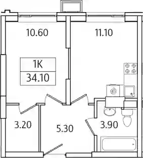 7 610 000 ₽1-к.квартира, 33.9 м², 8 эт.