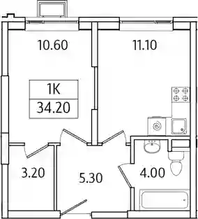 6 596 960 ₽1-к.квартира, 34.1 м², 16 эт.