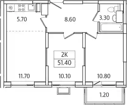 11 716 186 ₽2-к.квартира, 49 м², 2 эт.