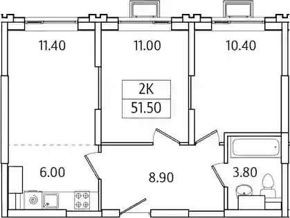 11 716 186 ₽2-к.квартира, 49 м², 2 эт.
