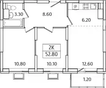14 692 420 ₽2-к.квартира, 53.2 м², 3 эт.