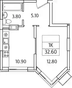 7 630 000 ₽1-к.квартира, 32.6 м², 3 эт.