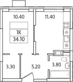 9 200 000 ₽1-к.квартира, 34.1 м², 12 эт.