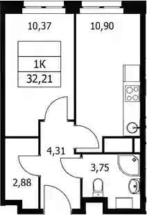 7 194 207 ₽1-к.квартира, 32.34 м², 15 эт.