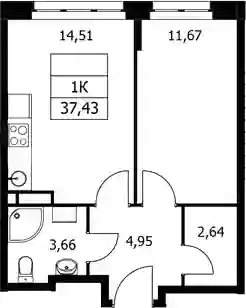 6 800 000 ₽1-к.квартира, 34.62 м², 14 эт.