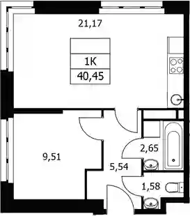 9 557 707 ₽1-к.квартира, 40.2 м², 13 эт.