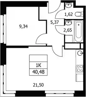 9 348 576 ₽1-к.квартира, 40.69 м², 4 эт.