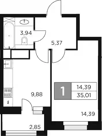 10 233 270 ₽1-к.квартира, 39.18 м², 5 эт.