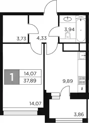 9 738 800 ₽1-к.квартира, 37.21 м², 13 эт.