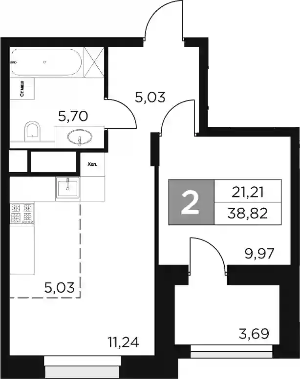 8 394 990 ₽2-к.квартира, 34.18 м², 9 эт.