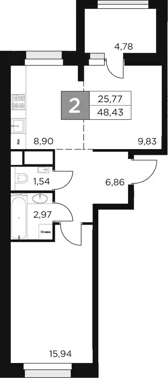13 460 760 ₽2-к.квартира, 48 м², 8 эт.