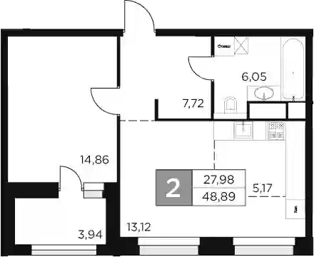 12 124 720 ₽2-к.квартира, 46.92 м², 14 эт.