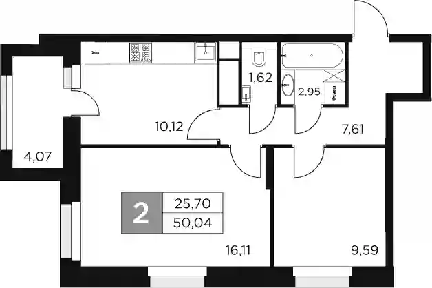 11 942 350 ₽3-к.квартира, 50.05 м², 2 эт.