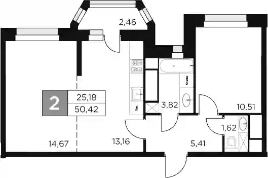 11 608 010 ₽2-к.квартира, 46.36 м², 2 эт.