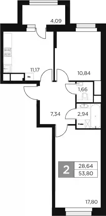 11 795 790 ₽3-к.квартира, 49.41 м², 12 эт.