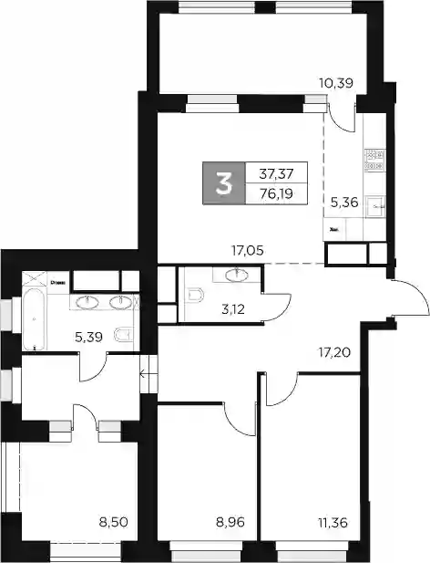 28 690 000 ₽3-к.квартира, 71.45 м², 1 эт.