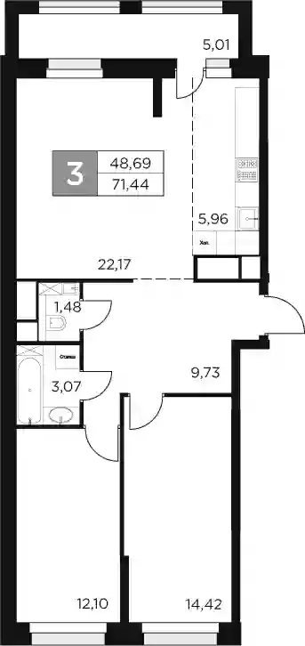 17 418 800 ₽3-к.квартира, 57.01 м², 12 эт.