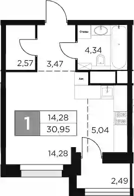 10 432 500 ₽1-к.квартира, 30.55 м², 17 эт.