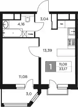 8 030 759 ₽1-к.квартира, 33.85 м², 11 эт.