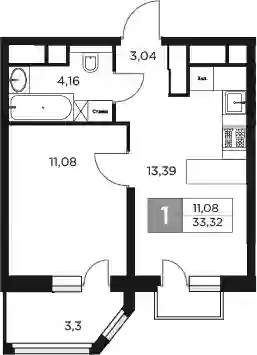 8 030 759 ₽1-к.квартира, 33.85 м², 11 эт.