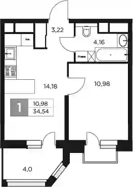 8 171 254 ₽1-к.квартира, 34.58 м², 10 эт.