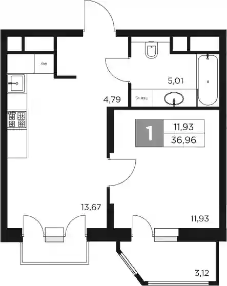 8 993 840 ₽1-к.квартира, 37.21 м², 12 эт.