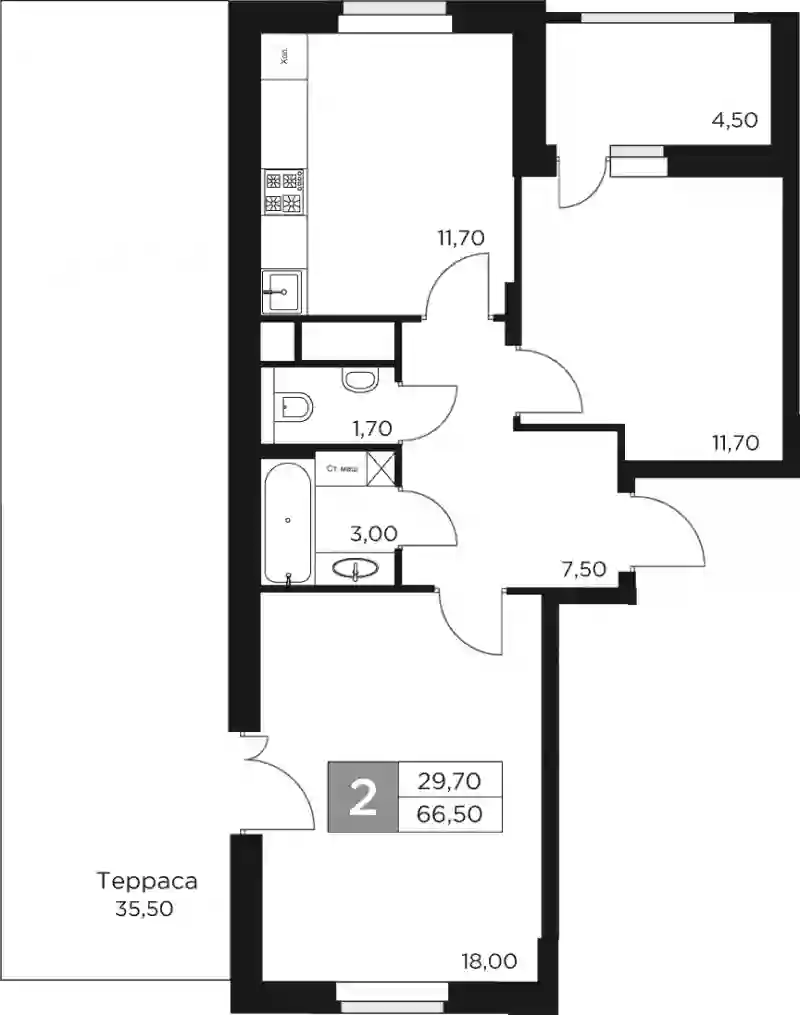 10 518 660 ₽2-к.квартира, 38.89 м², 3 эт.