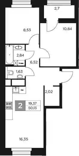 13 317 120 ₽3-к.квартира, 49.92 м², 2 эт.