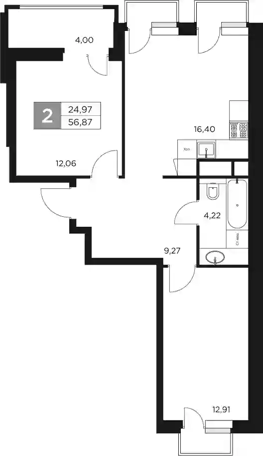 13 556 300 ₽2-к.квартира, 42.92 м², 14 эт.