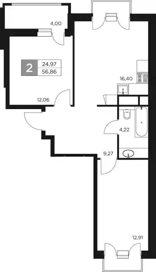 12 901 732 ₽3-к.квартира, 57.01 м², 12 эт.
