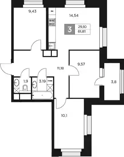 13 593 300 ₽3-к.квартира, 60.73 м², 9 эт.