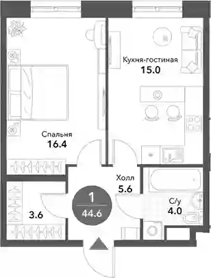 35 778 210 ₽2-к.квартира, 46.1 м², 15 эт.